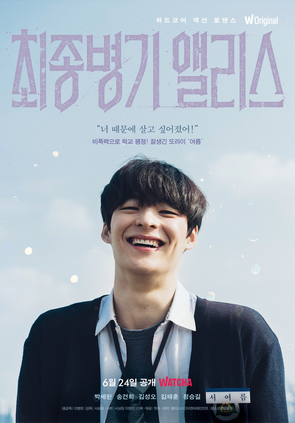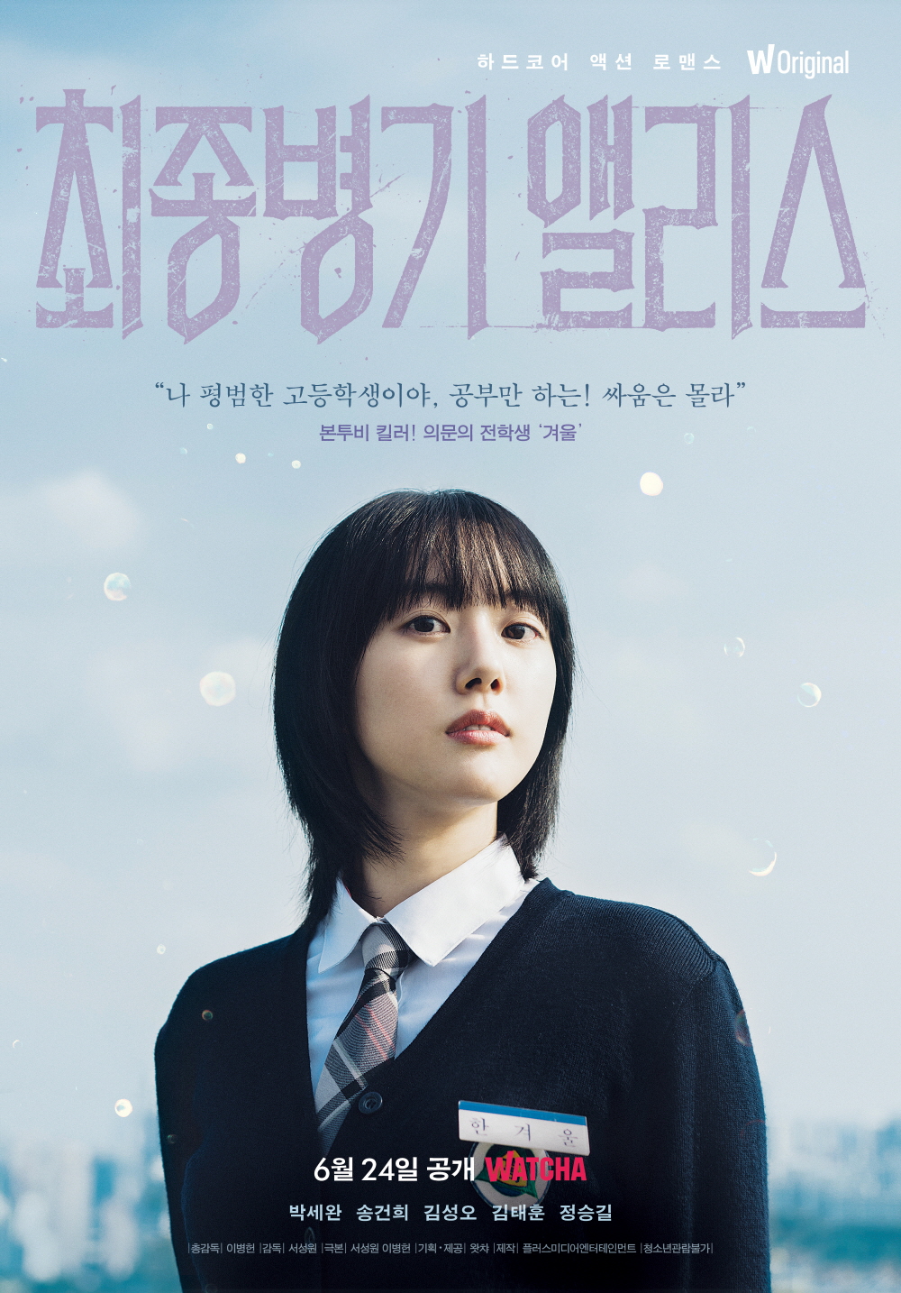 제목 <최종병기 앨리스> 제공 왓챠 제작 플러스미디어엔터테인먼트 총감독 이병헌 감독 서성원 각본 서성원, 이병헌 출연 박세완, 송건희, 김성오, 김태훈, 정승길 공개 2022년 6월 24일(금) 후 매주 금요일 순차 공개